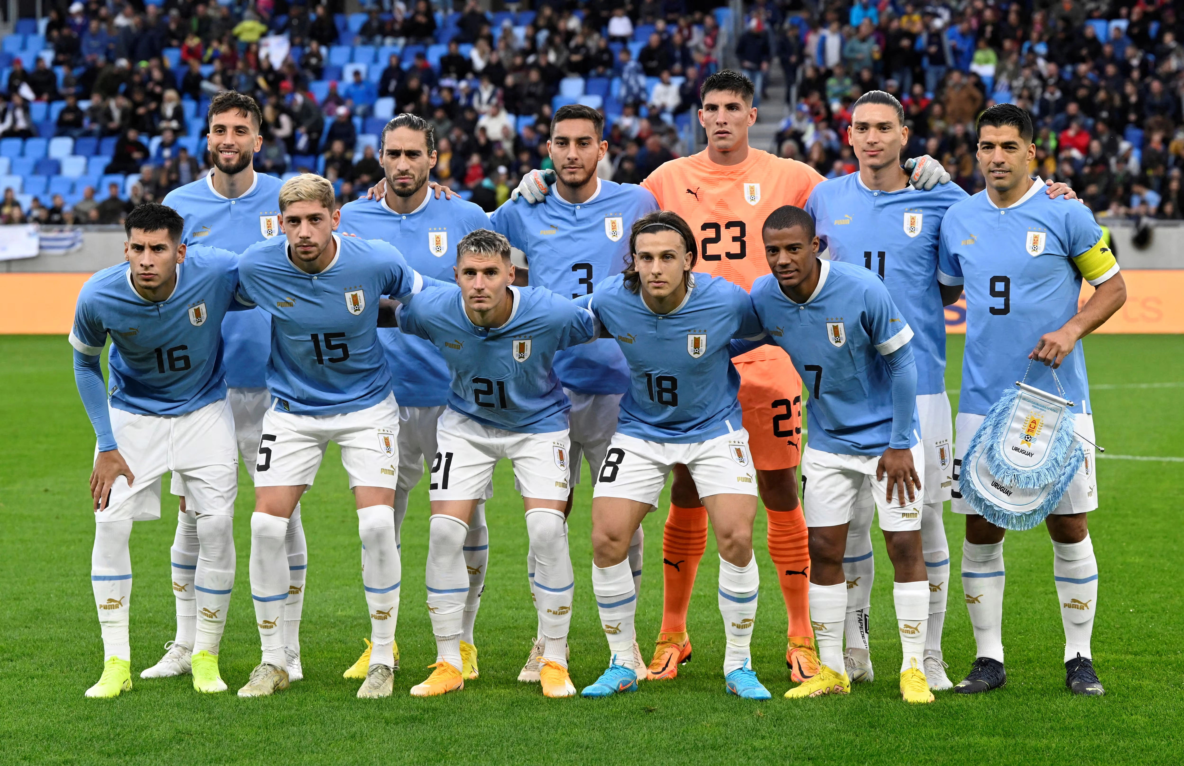 The Uruguay national football team, nicknamed La Celeste ("The Sky Blue"), have represented Uruguay in international men's football since their first international match in 1902 and is administered by the Uruguayan Football Association, the governing body for football in Uruguay, which is affiliated with CONMEBOL and comes under the global jurisdiction of world football's governing body FIFA. Uruguay's home stadium is the Estadio Centenario, and they have been coached by Marcelo Bielsa since 2023.